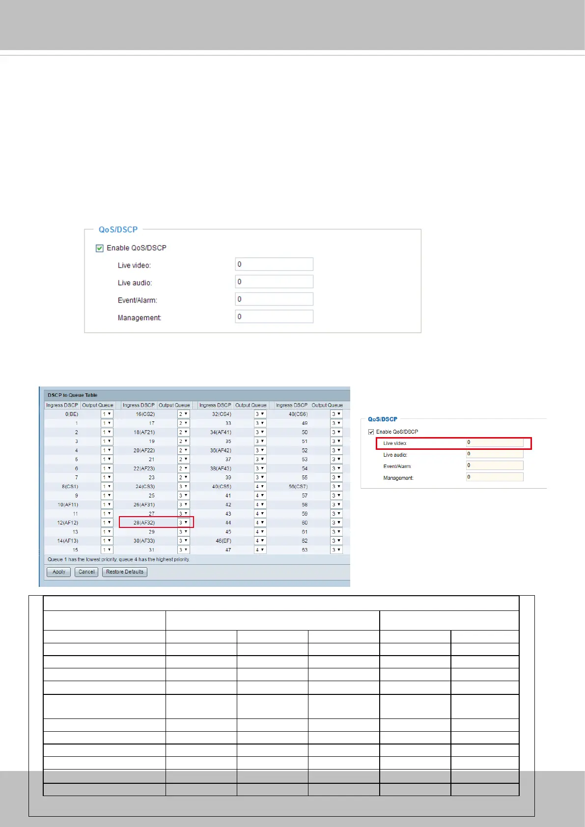 Below are the setting options of DSCP (DiffServ Codepoint). Specify the DSCP value for each application