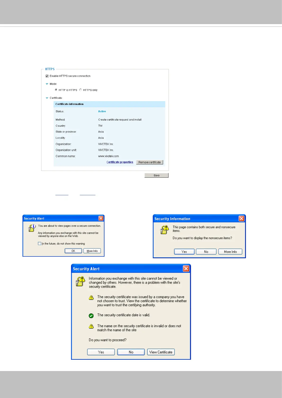 Alert dialogs will pop up. Click OK or Yes to enable HTTPS.