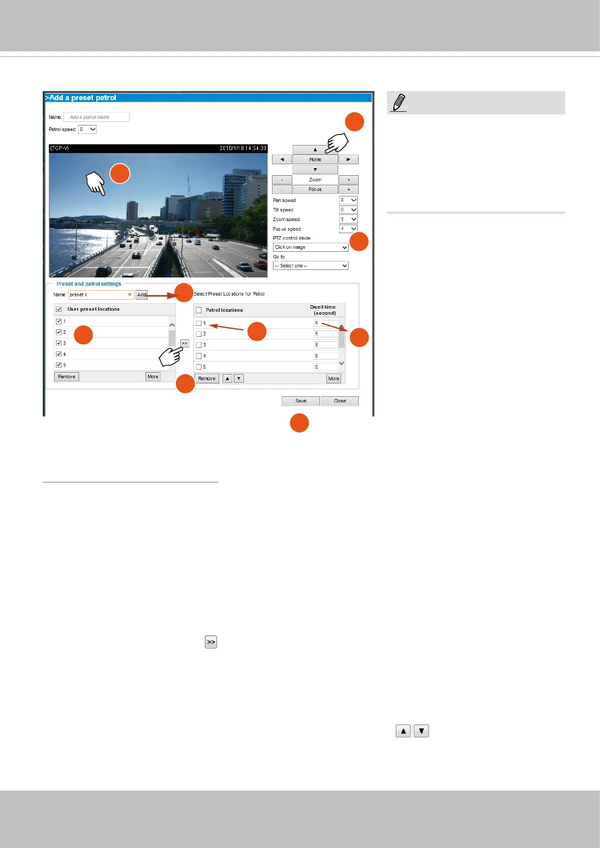 Please follow the steps below to congure preset positions and arrange them in a pan/tilt/zoom tour: