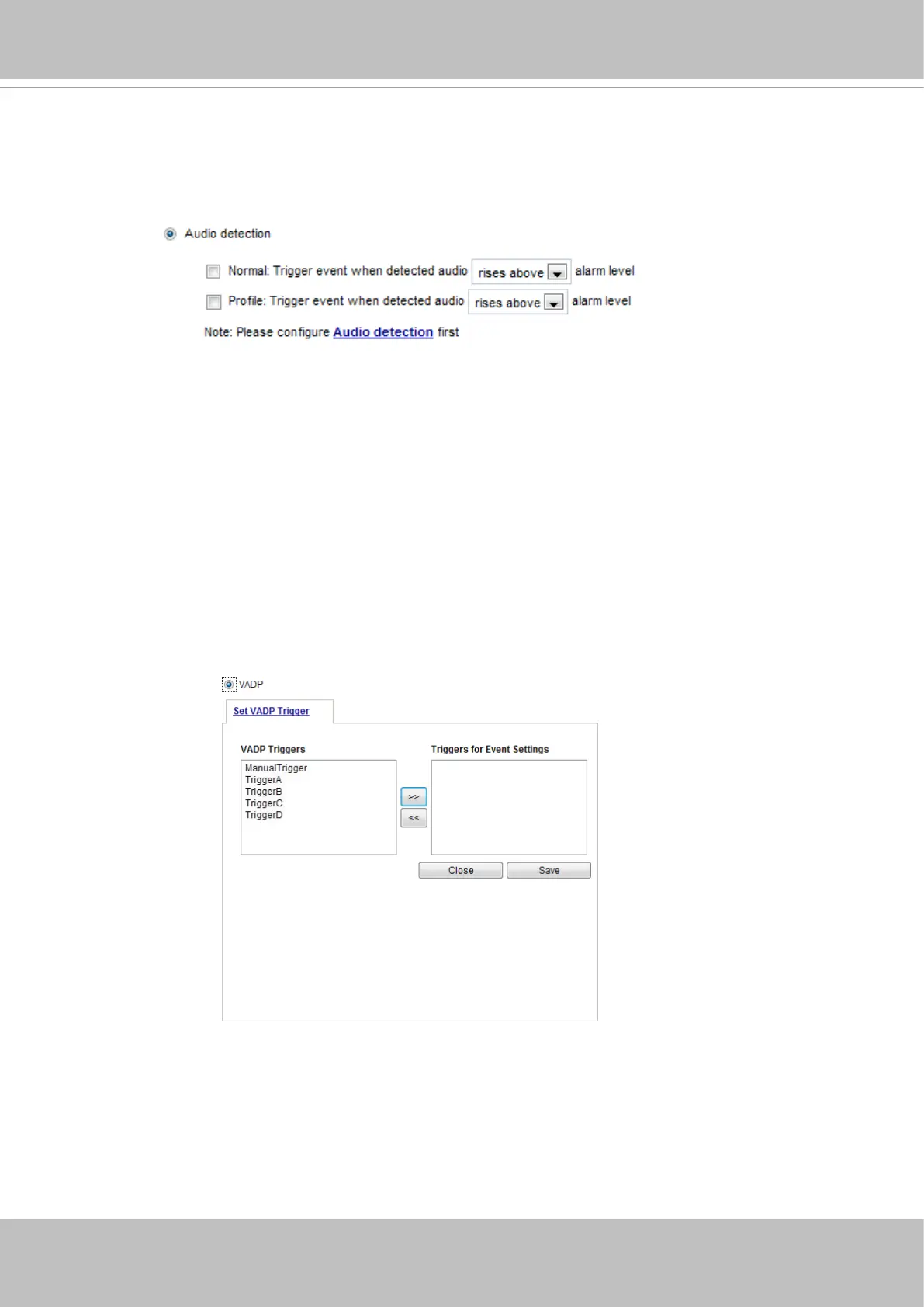 Once you have a preset audio alarm level, you can dene the triggering condition either as an audio