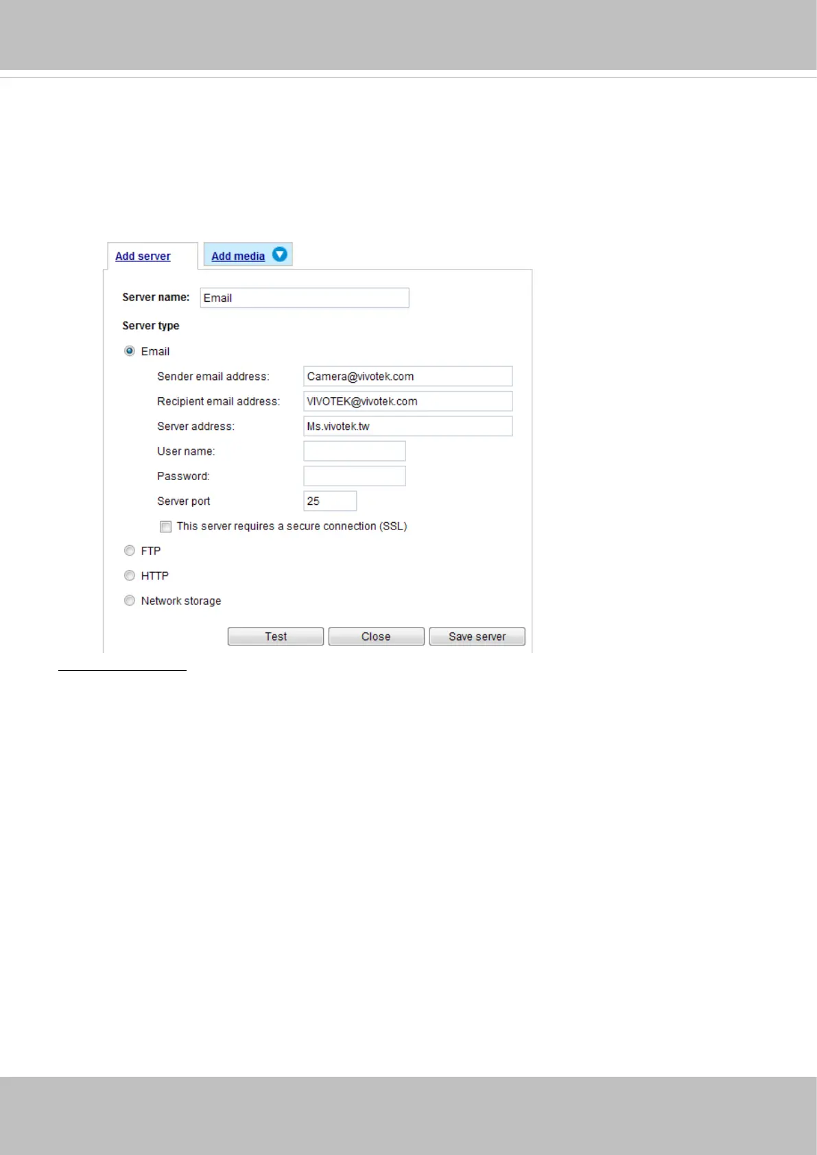 are sent to when a trigger is activated. A total of 5 server settings can be congured.