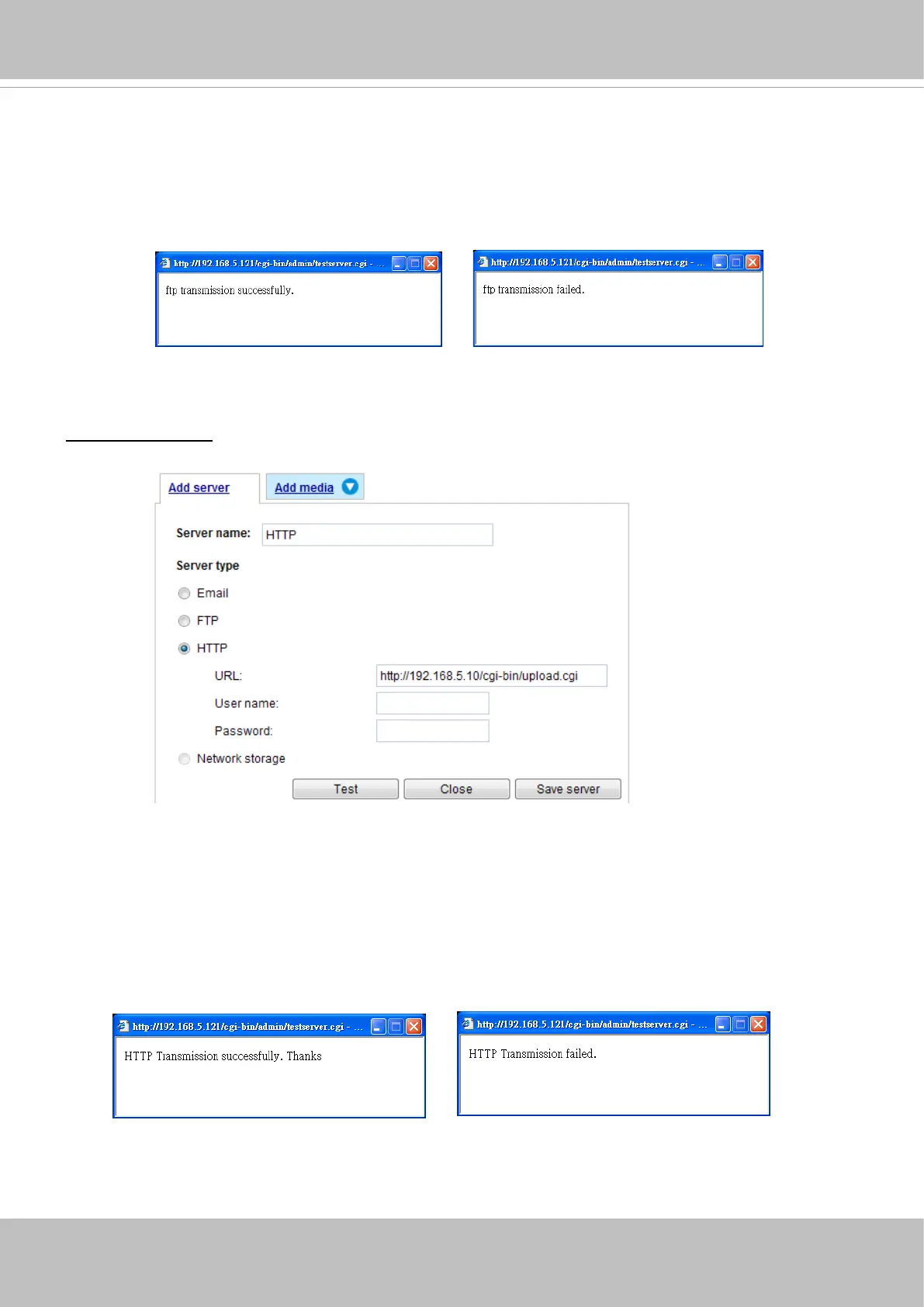 To verify if the FTP settings are correctly congured, click Test. The result will be shown in a pop-up