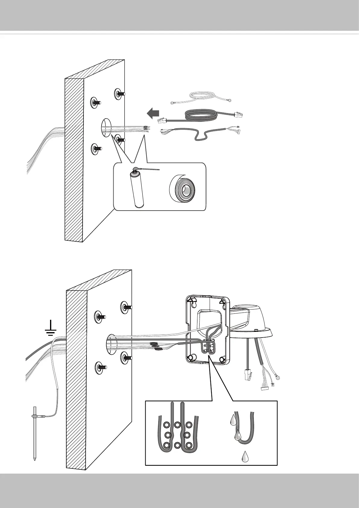 6. Route your I/O combo and Ethernet cables along the routing guide poles to form drip loops.