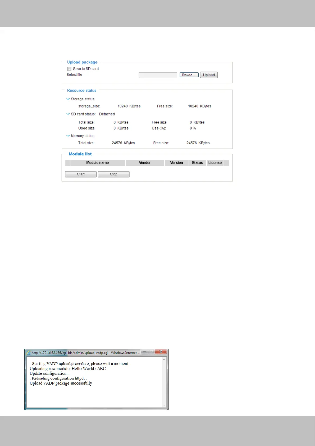 • Once the software package is successfully uploaded, the module conguration (vadp.xml)