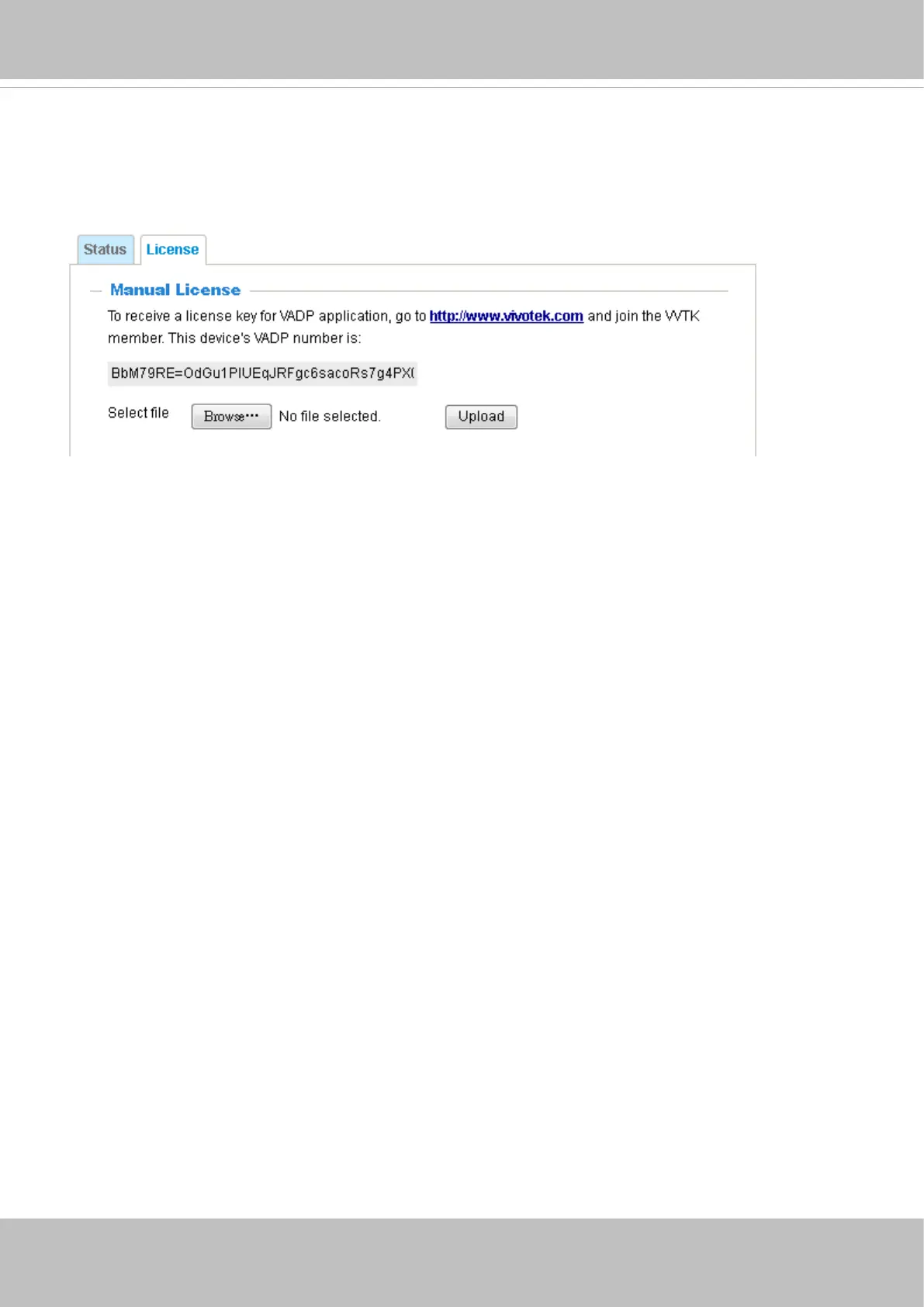 On the License page, register and activate the license for using VIVOTEK's VADP modules. You