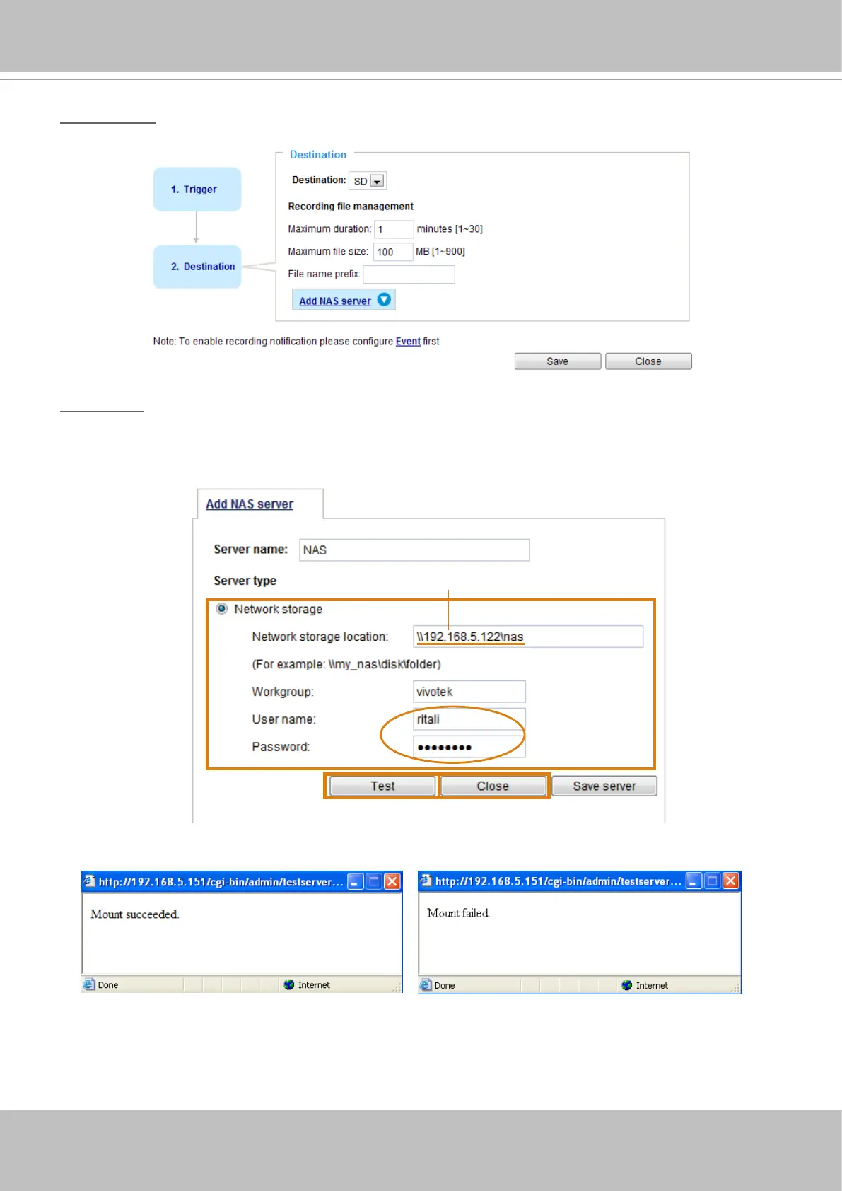 Click Add NAS server to open the server setting window and follow the steps below to set up: