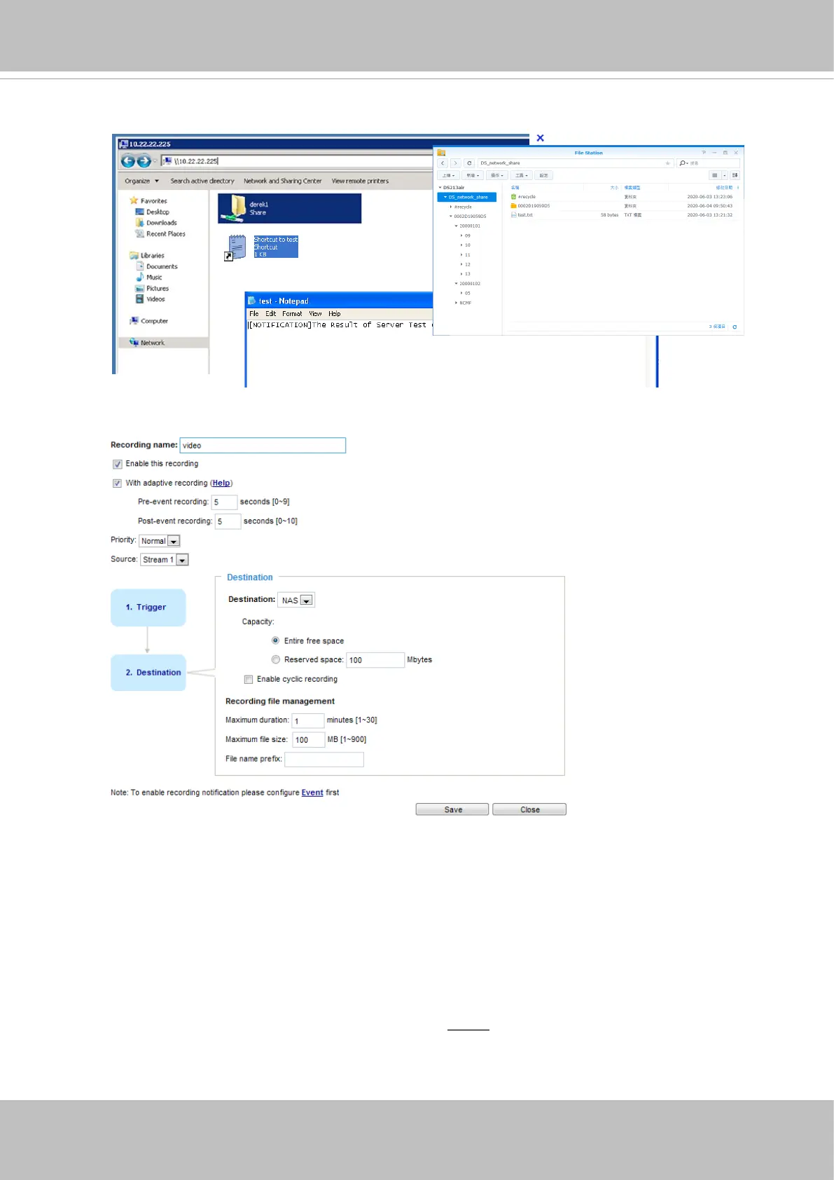 When completed, select Enable this recording. Click Save to enable the setting and click Close to exit