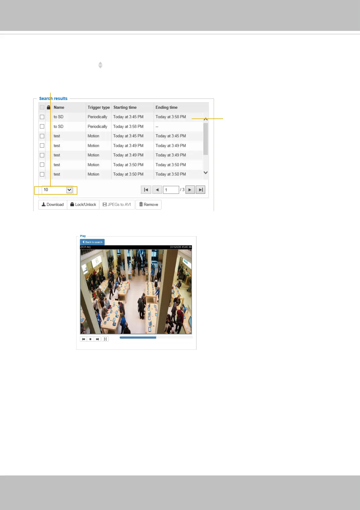 The following is an example of search results. There are four columns: Trigger time, Media type, Trigger