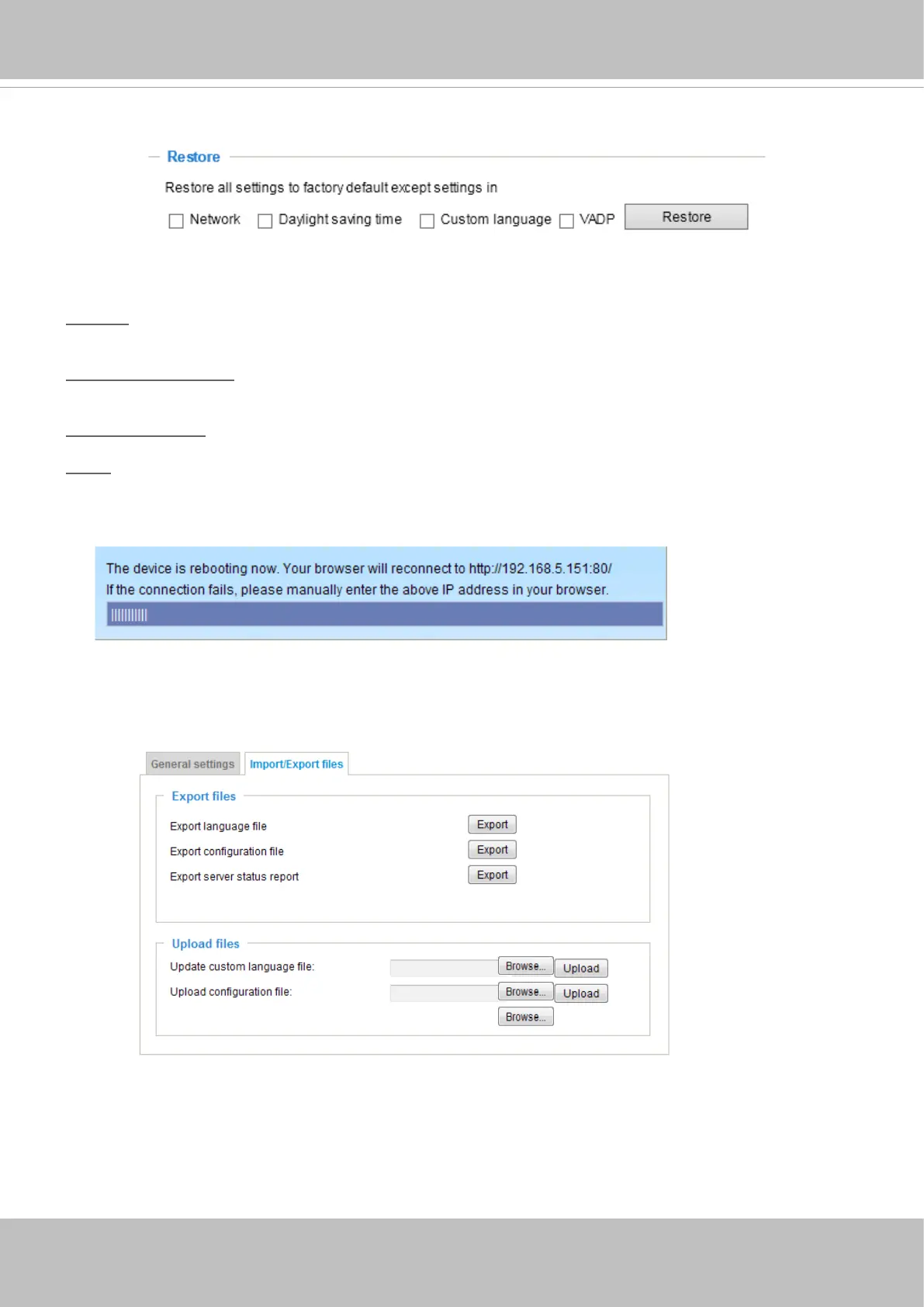 This feature allows you to restore the Network Camera to factory default settings.