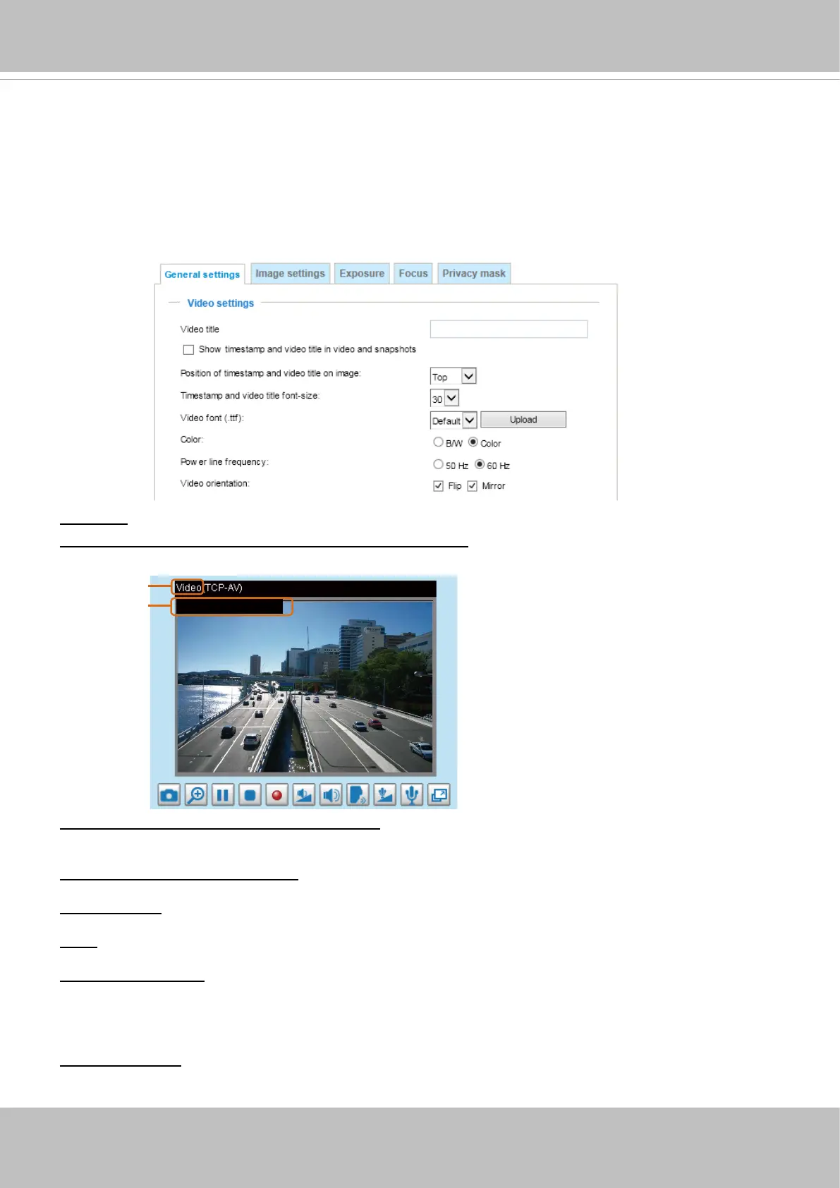 Position of timestamp and video title on image: Select to display time stamp and video title on the top or