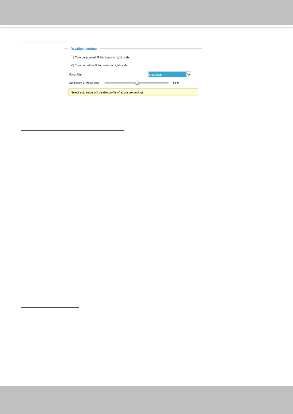 Tune the responsiveness of the IR cut lter to lighting conditions by the percentage. Judging by the light