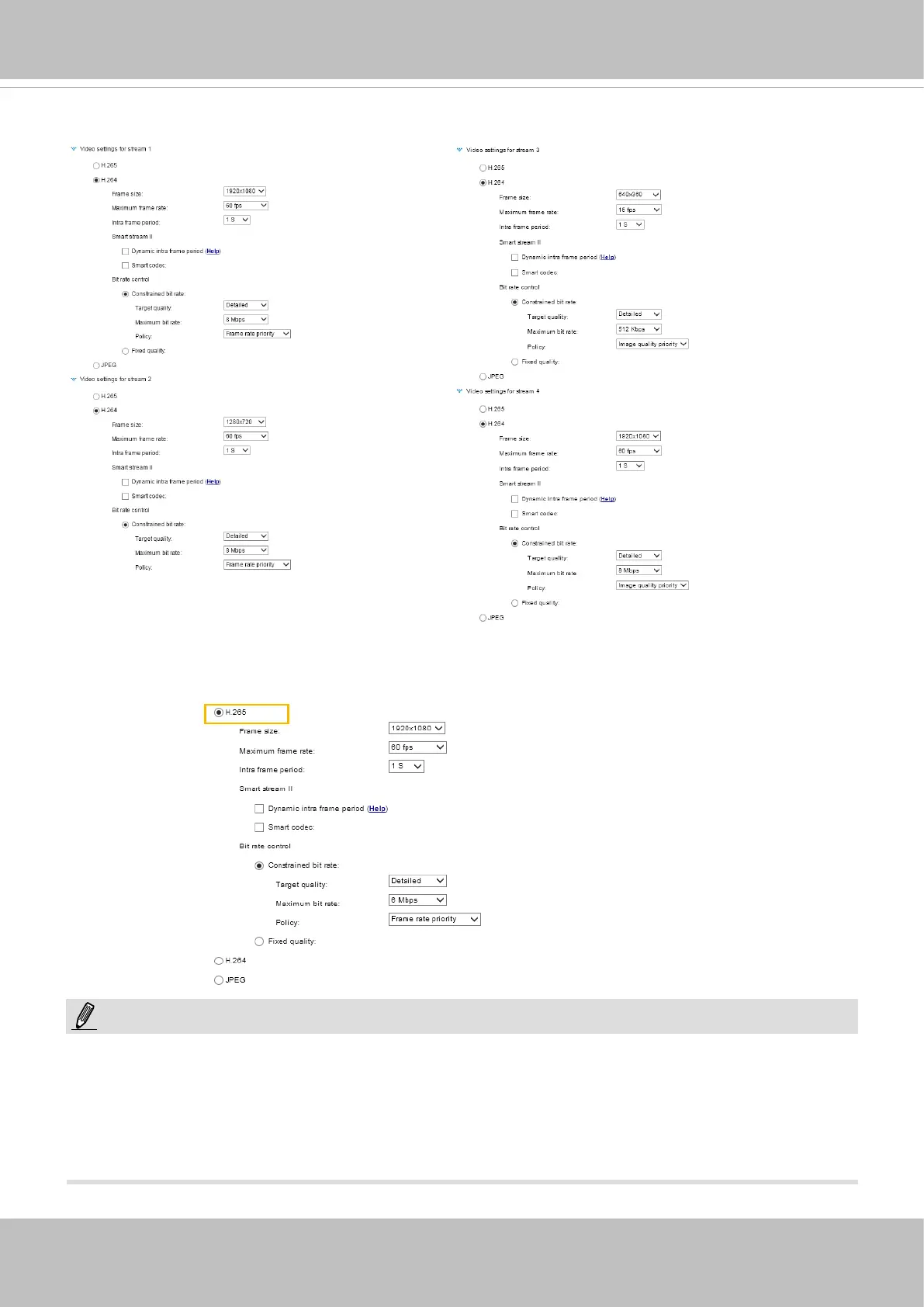 Codec) for real-time viewing. If the H.265 / H.264 mode is selected, the video is streamed via RTSP