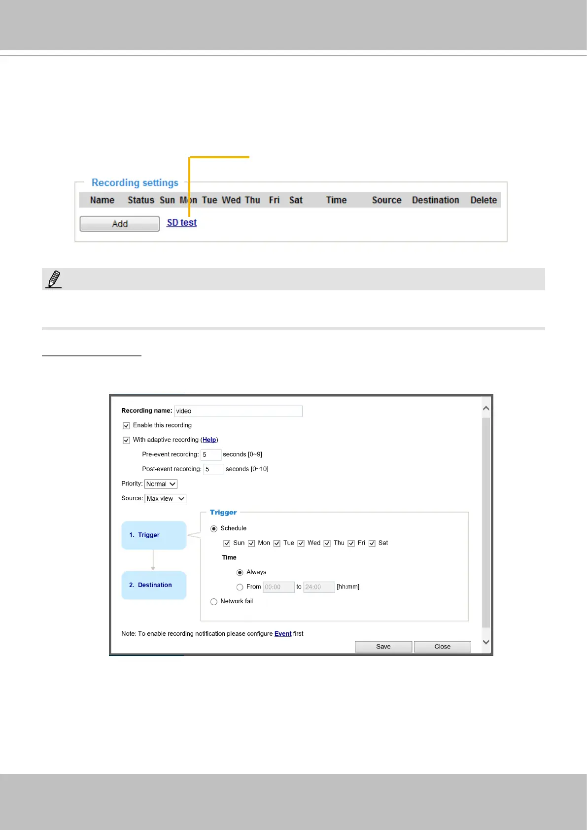 Click Add to open the recording setting window. On this page, you can dene the adaptive recording,
