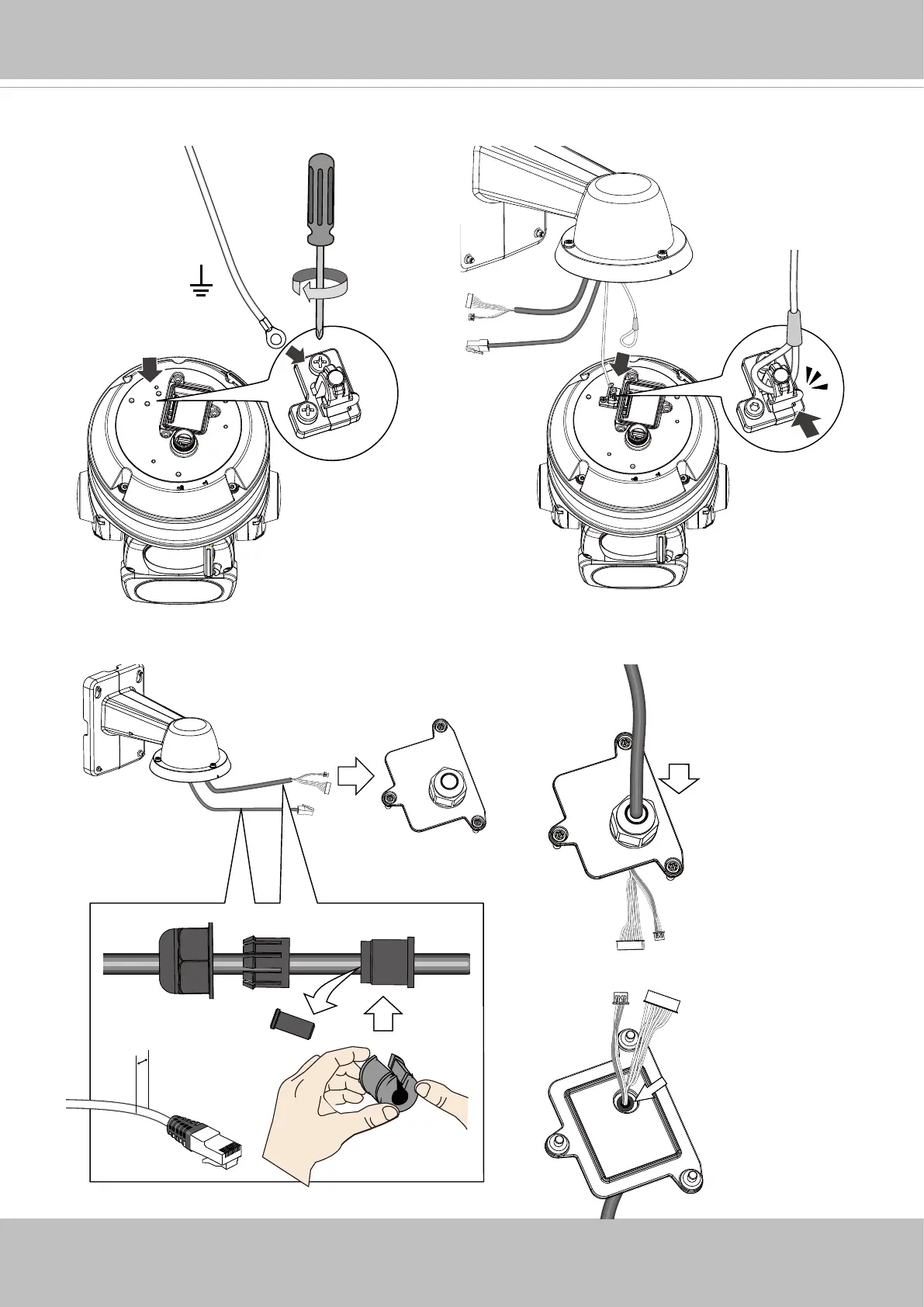 10. Install the components of the waterproof cable gland to the Ethernet and I/O combo cables.