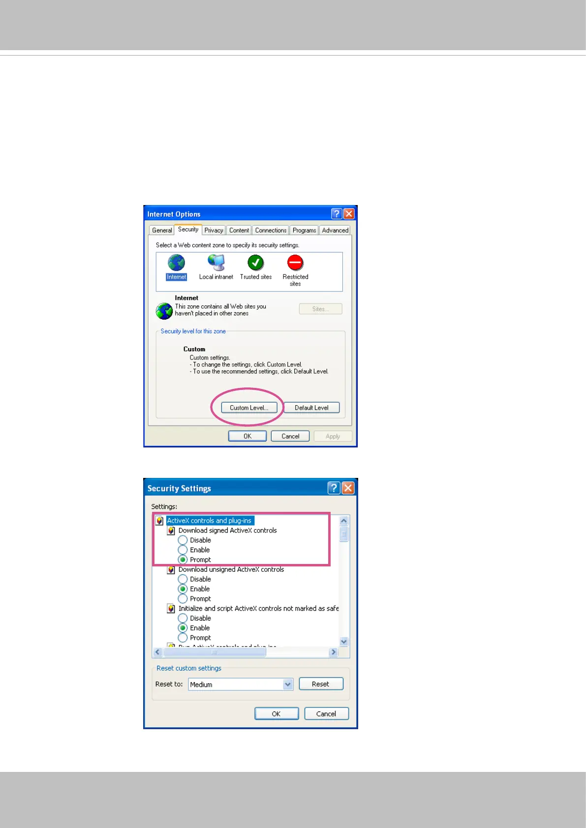 ► If you see a dialog box indicating that your security settings prohibit running ActiveX