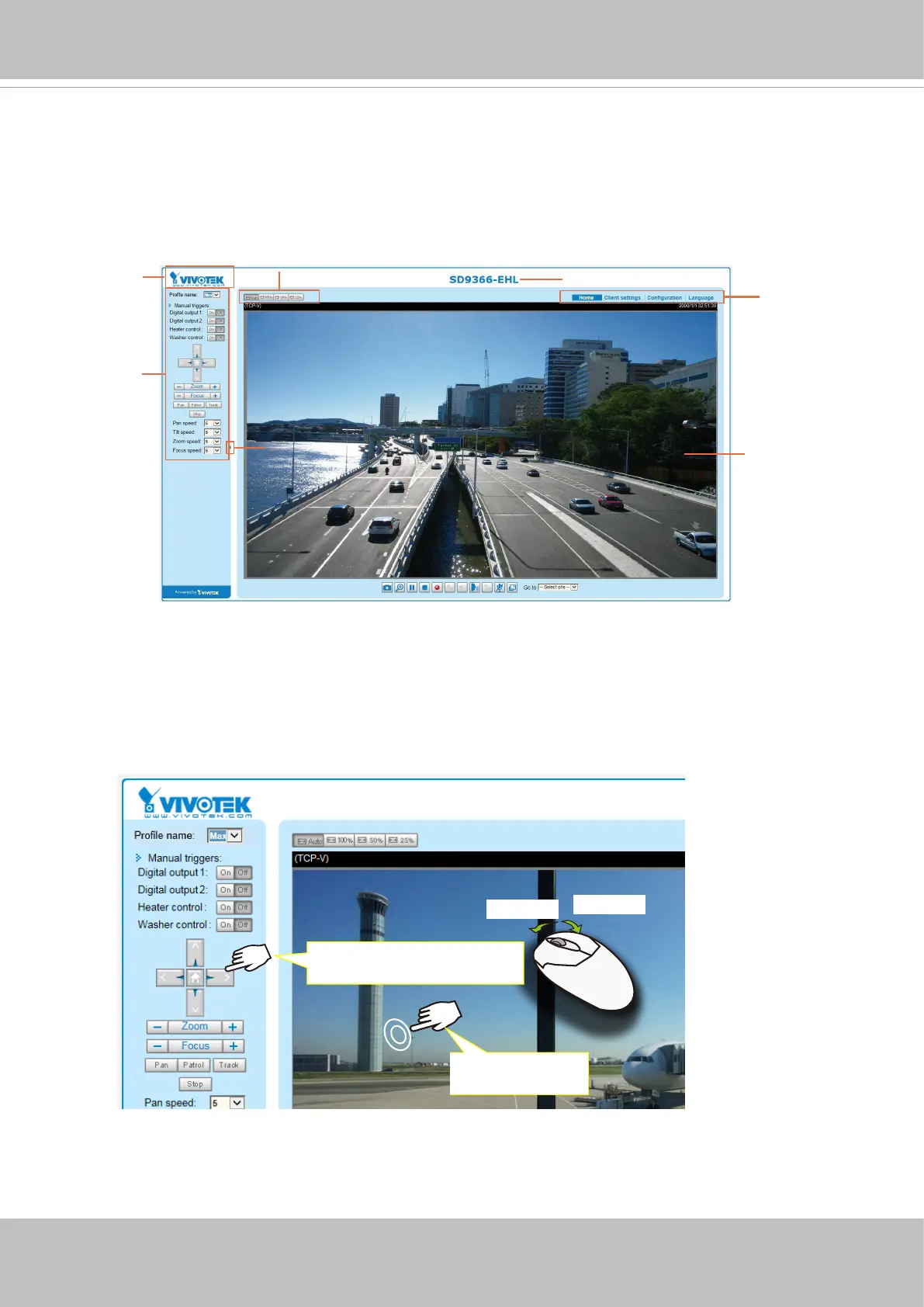 click and hold down the left mouse button when clicking a PTZ button. The same applies to arrow keys,