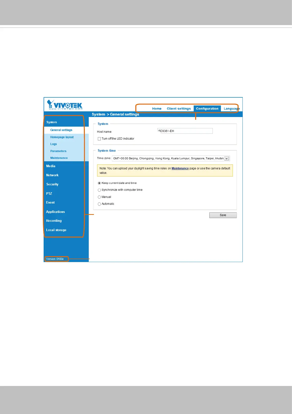 Click Configuration on the main page to enter the camera setting pages. Note that only