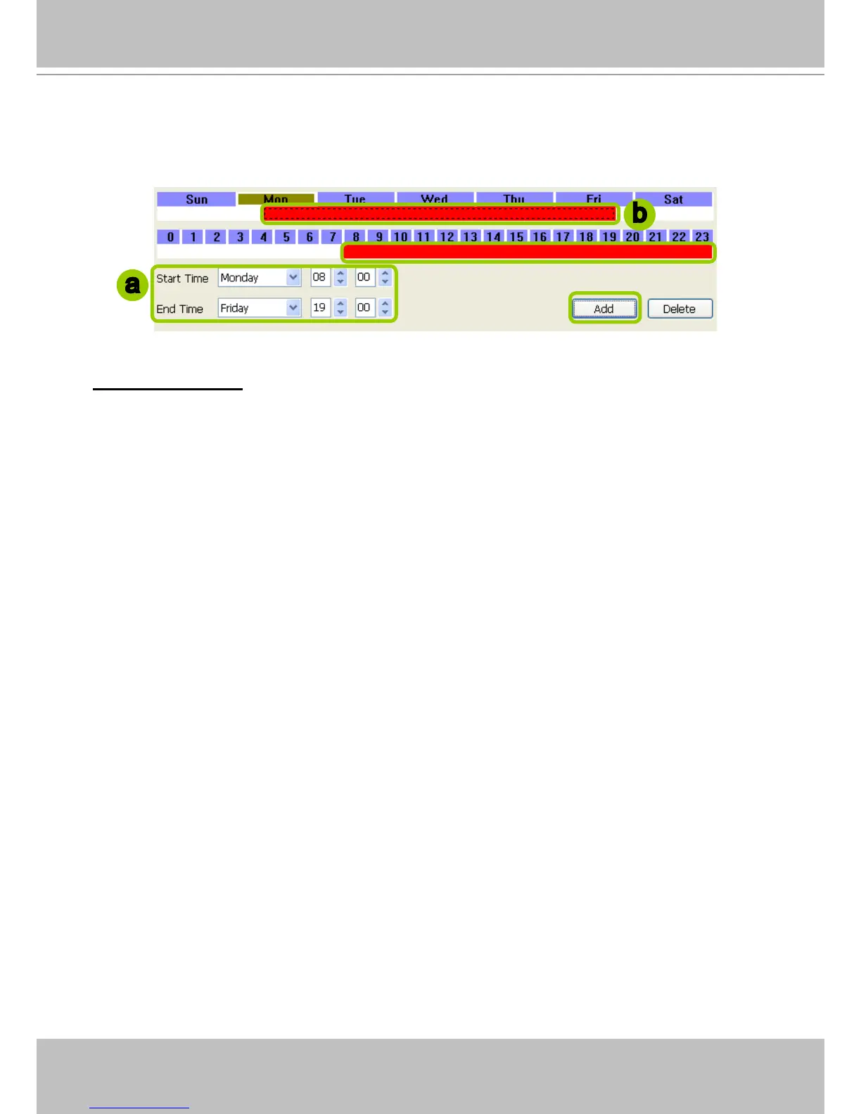 a. Directly select a day and enter the value in the Start Time and End Time fields, then click Add.