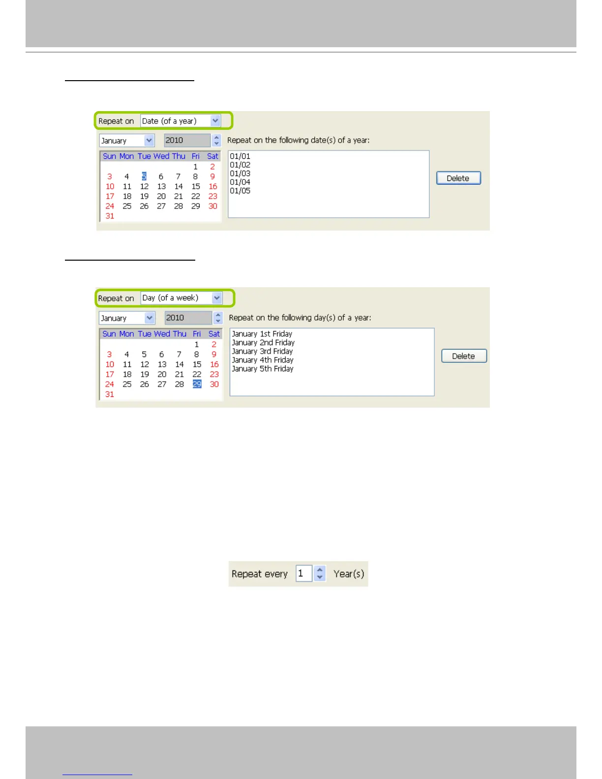 Repeat by date(s) of a year: