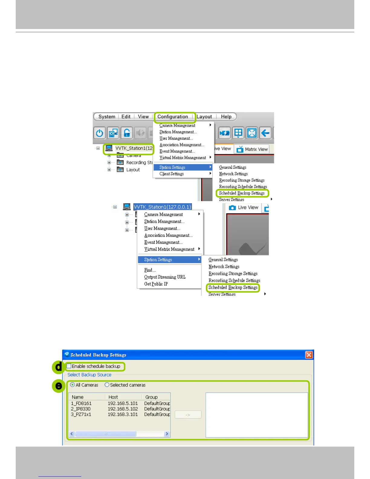 b. Click Conguration > Station Settings > Scheduled Backup Settings on the menu bar (or right-