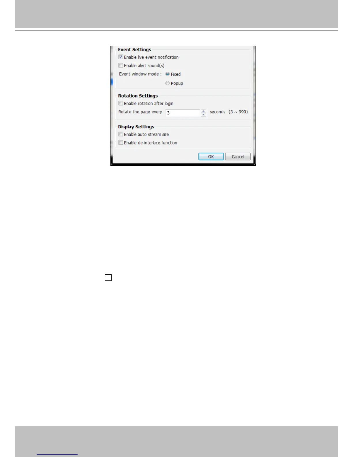 Event window mode: Select Fixed or Popup mode for the event window. For more information about