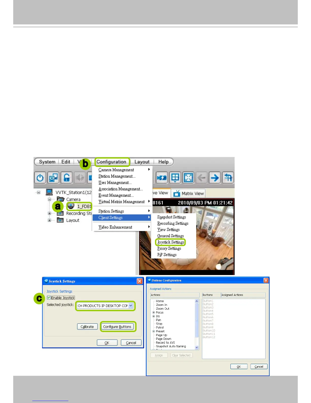 b. Click Conguration > Client Settings > Joystick Settings on the menu bar to open the Joystick