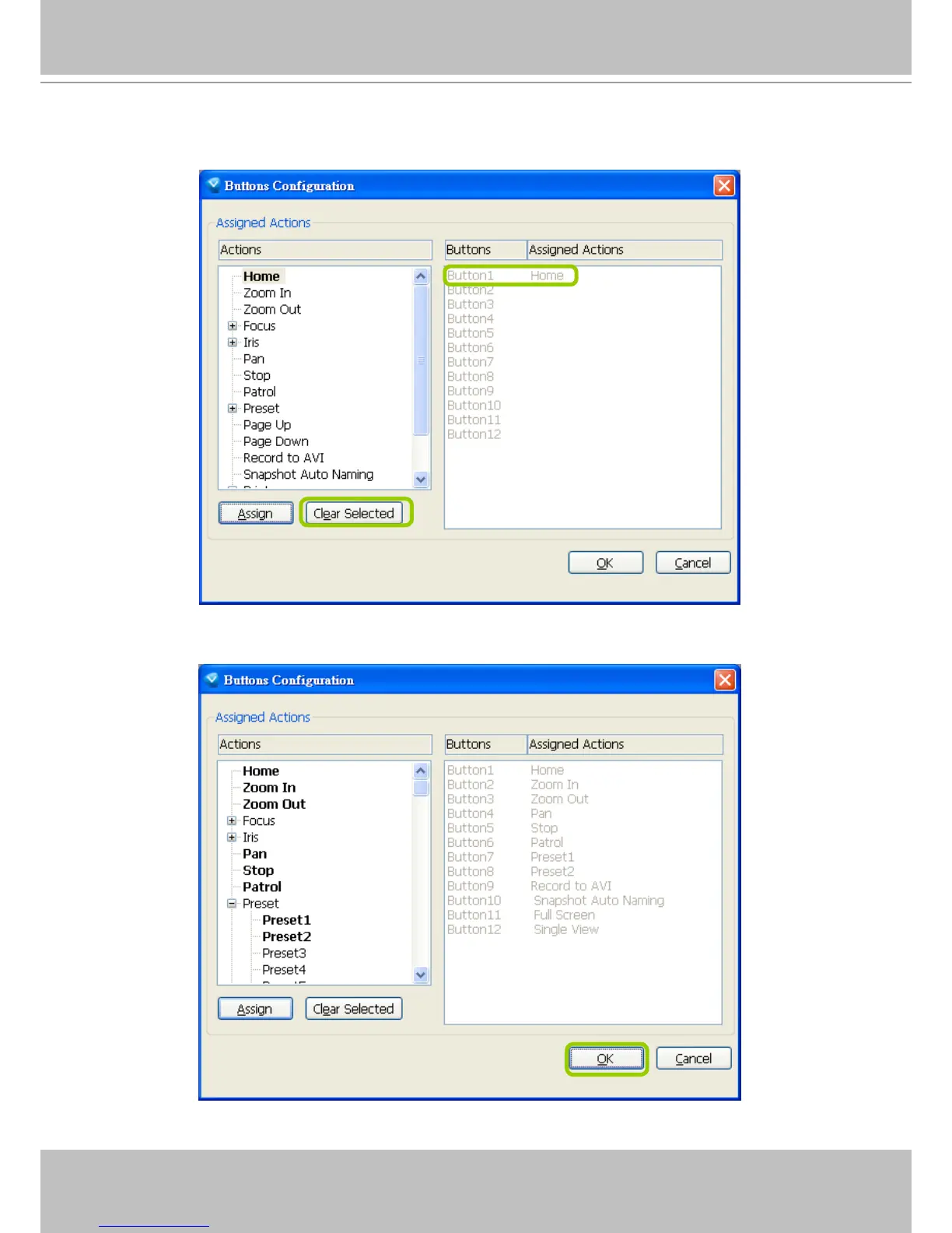 Note that a button can only be assigned with an action. If you want to modify the settings, select the