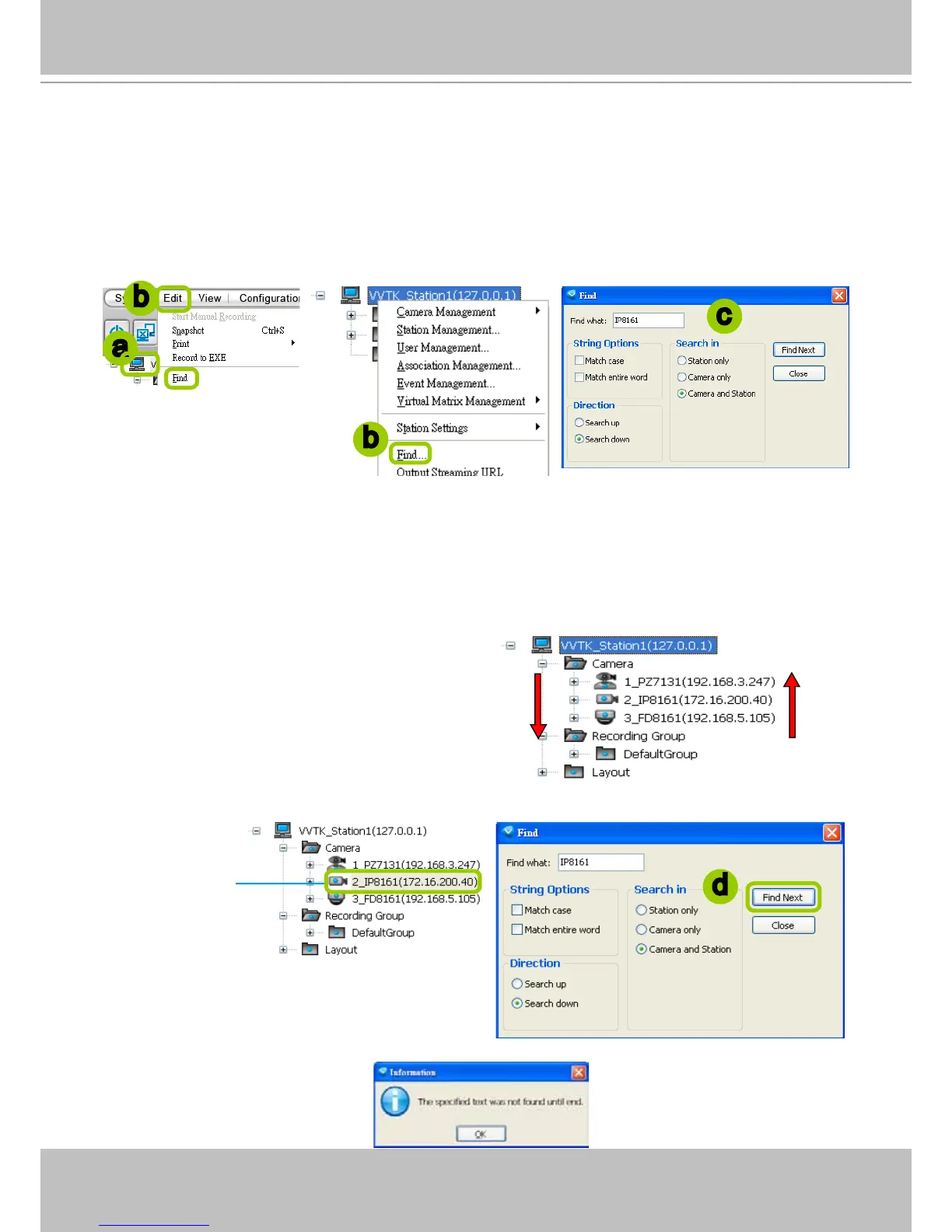Please follow the steps below to nd a device on the camera list: