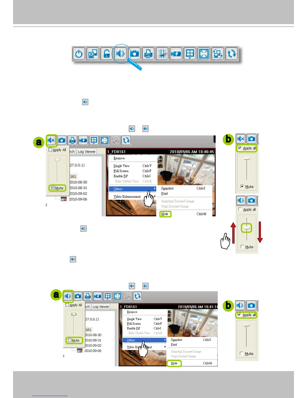 microphone. Please follow the steps below to adjust the volume or turn on/off the audio of the