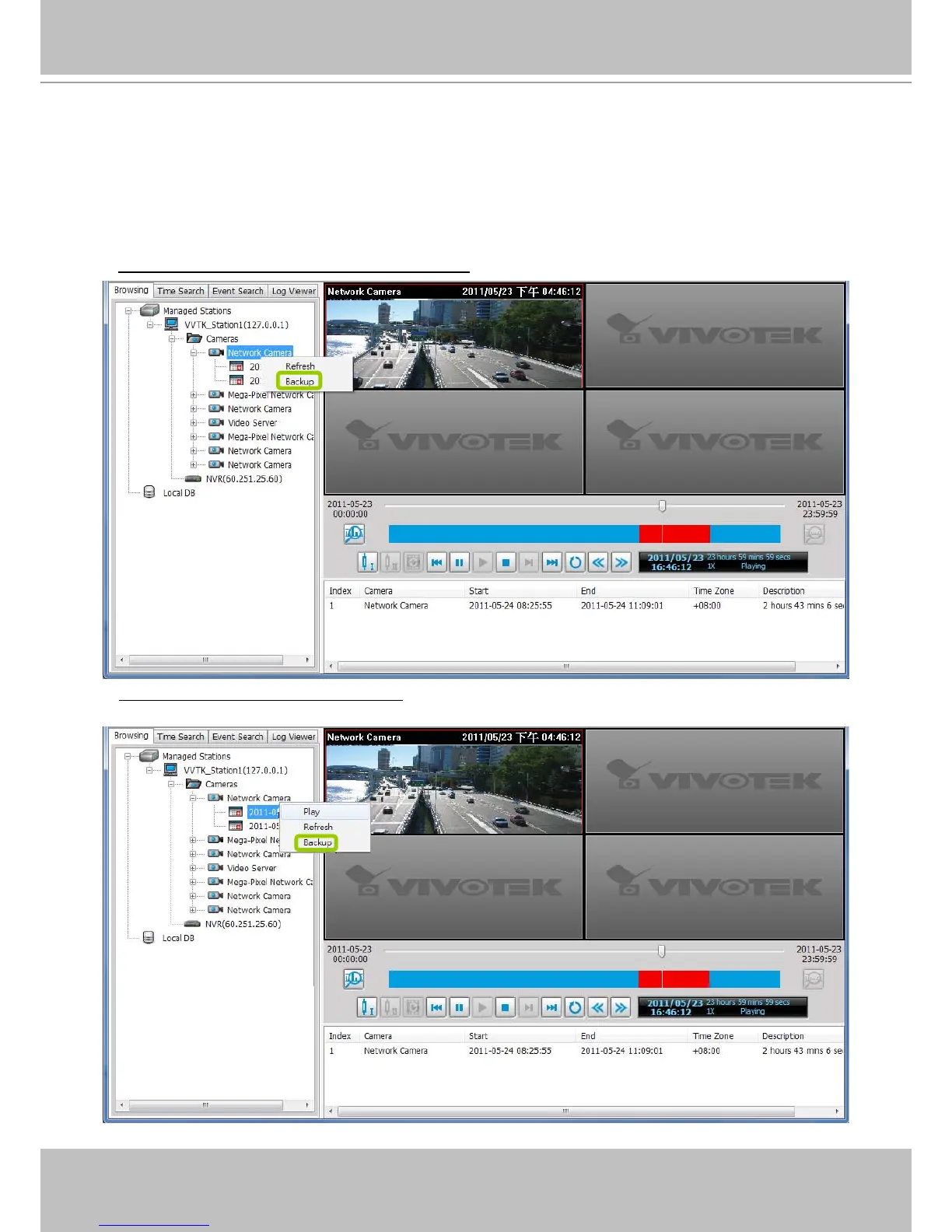 To backup all recorded video of the day: Right-click the option “date” and click Backup (or select the