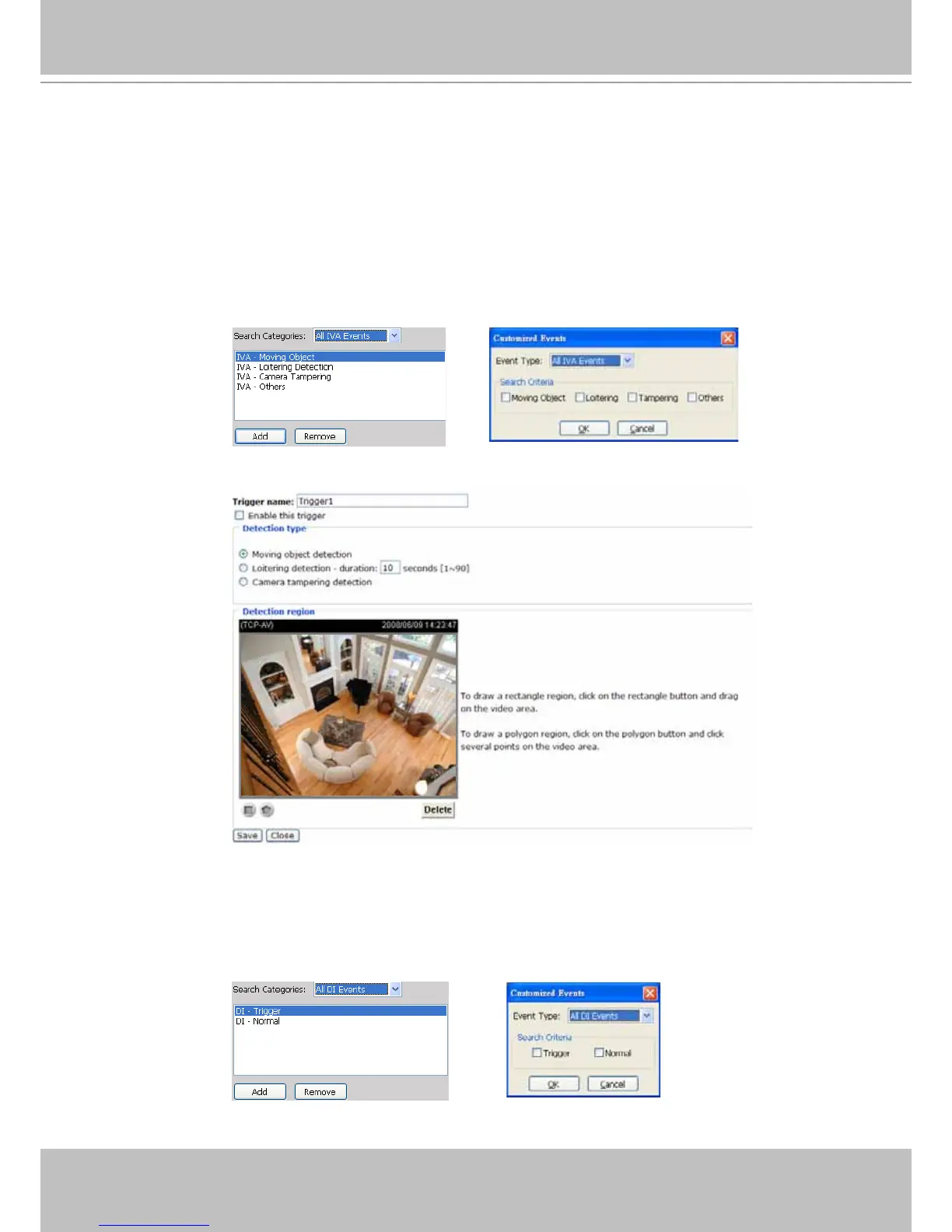 If you want to change the parameters of IVA, such as the detection region, loitering duration, etc, please