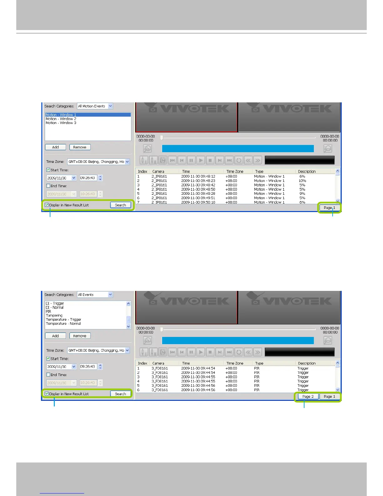 If Display in new result list is unchecked, all search results will be displayed on the original event list