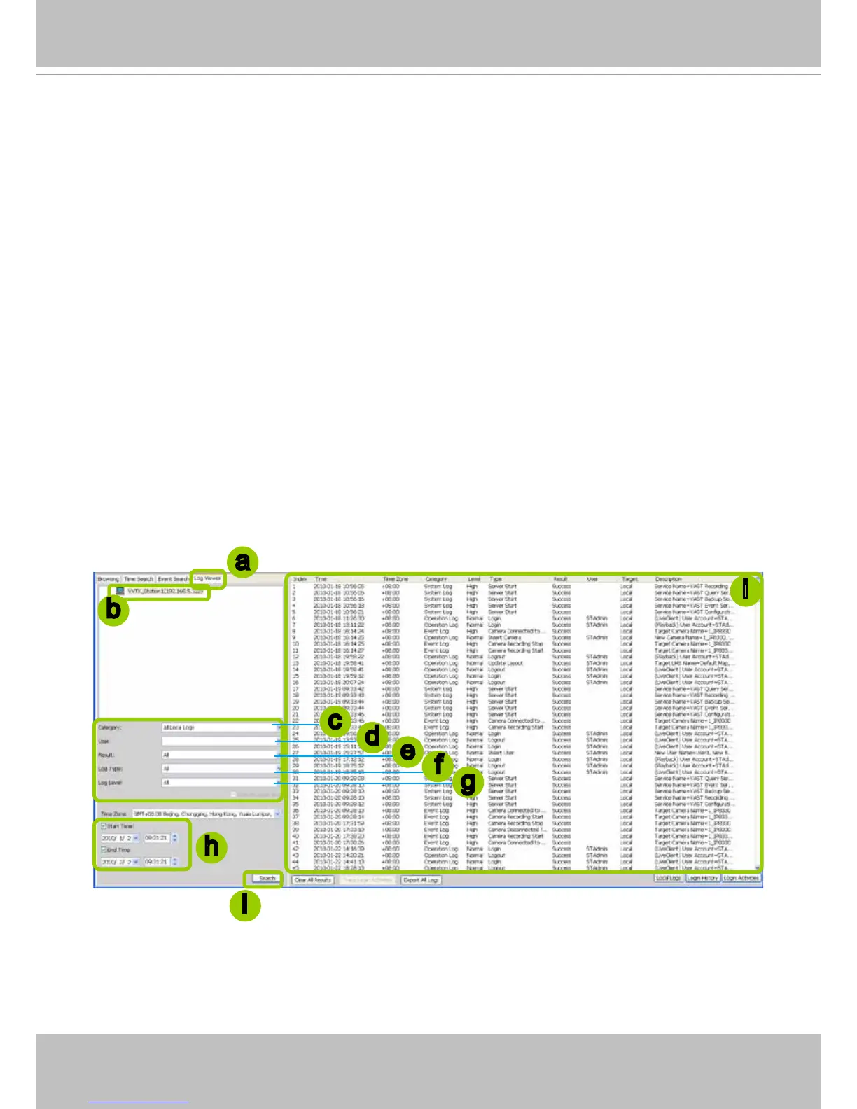 the start time and end time, the search will include all events saved by the server. Please refer to page