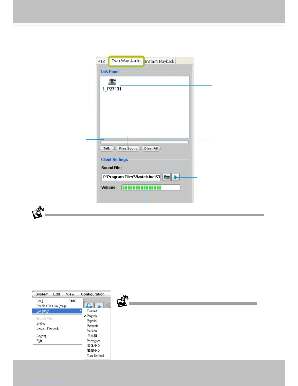 Only cameras that come with the two way audio function can be added to the Talk Panel.