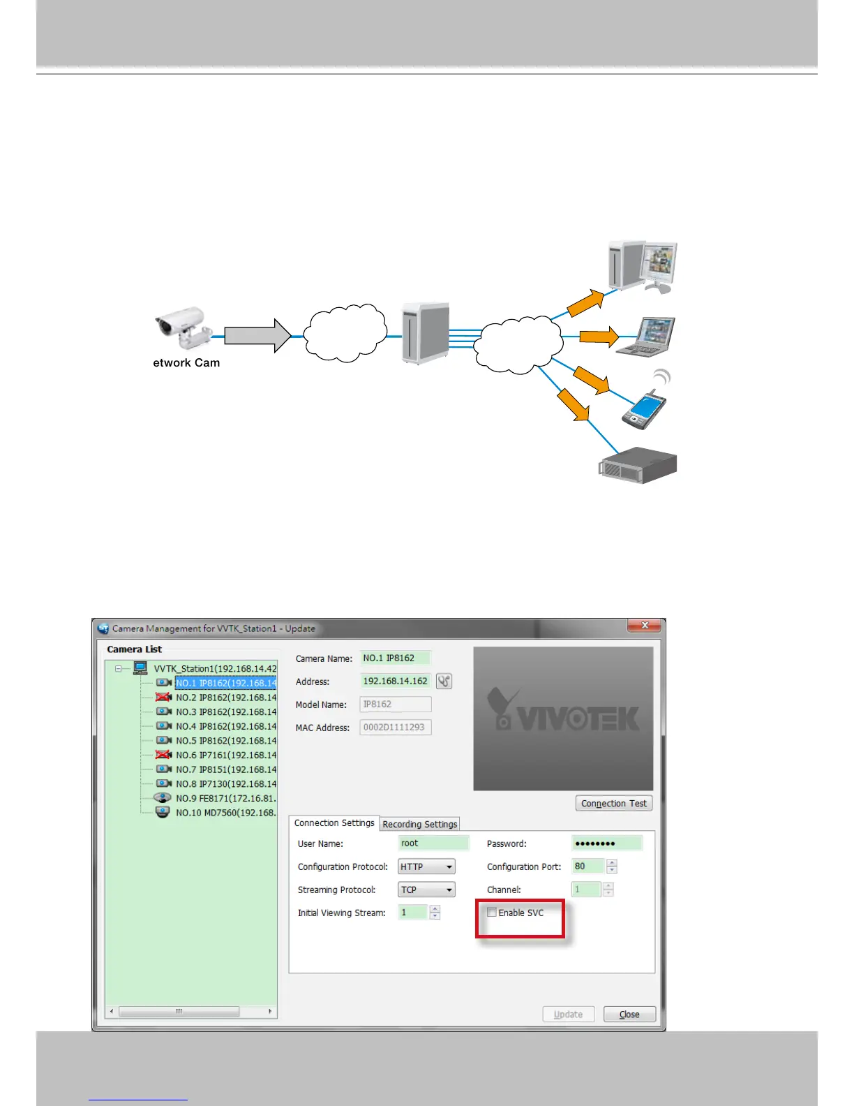 whether a network camera comes with the SVC feature. The SVC checkbox appears if the