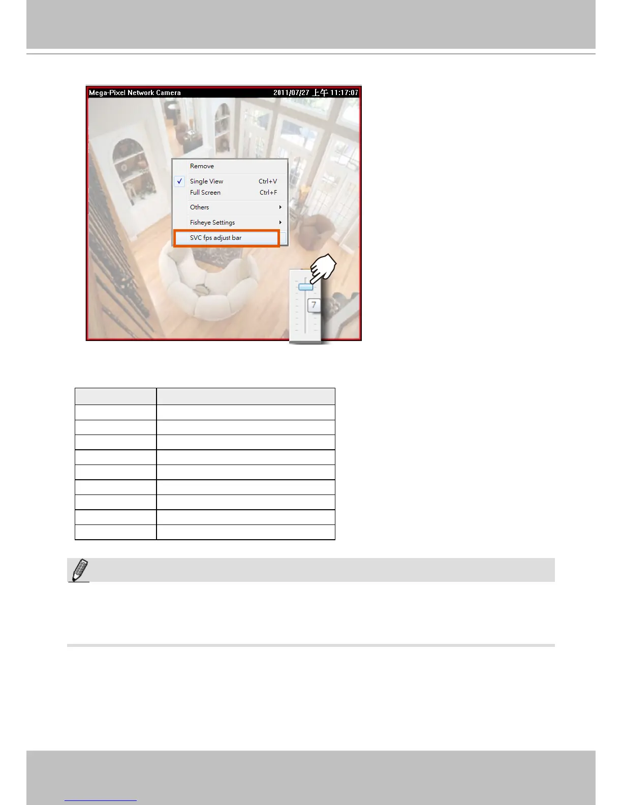 Right-click on the view cell of an SVC-enabled camera. Select SVC fps adjust bar.