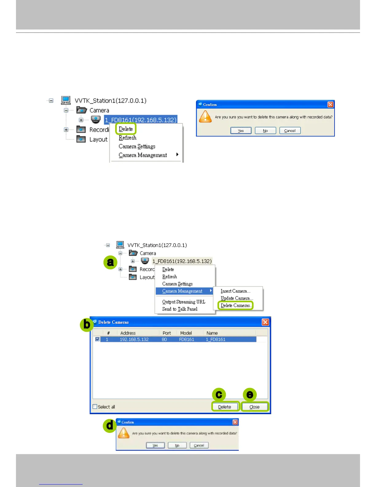 a. Click Conguration > Camera Management > Delete Cameras on the menu bar (or right-click the
