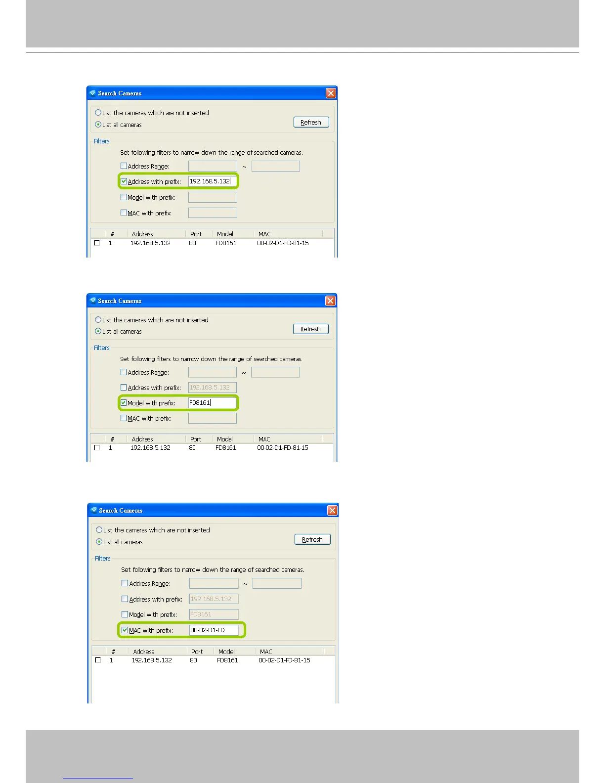 MAC with prex: You can type in the prex of the MAC address of the cameras to narrow down the