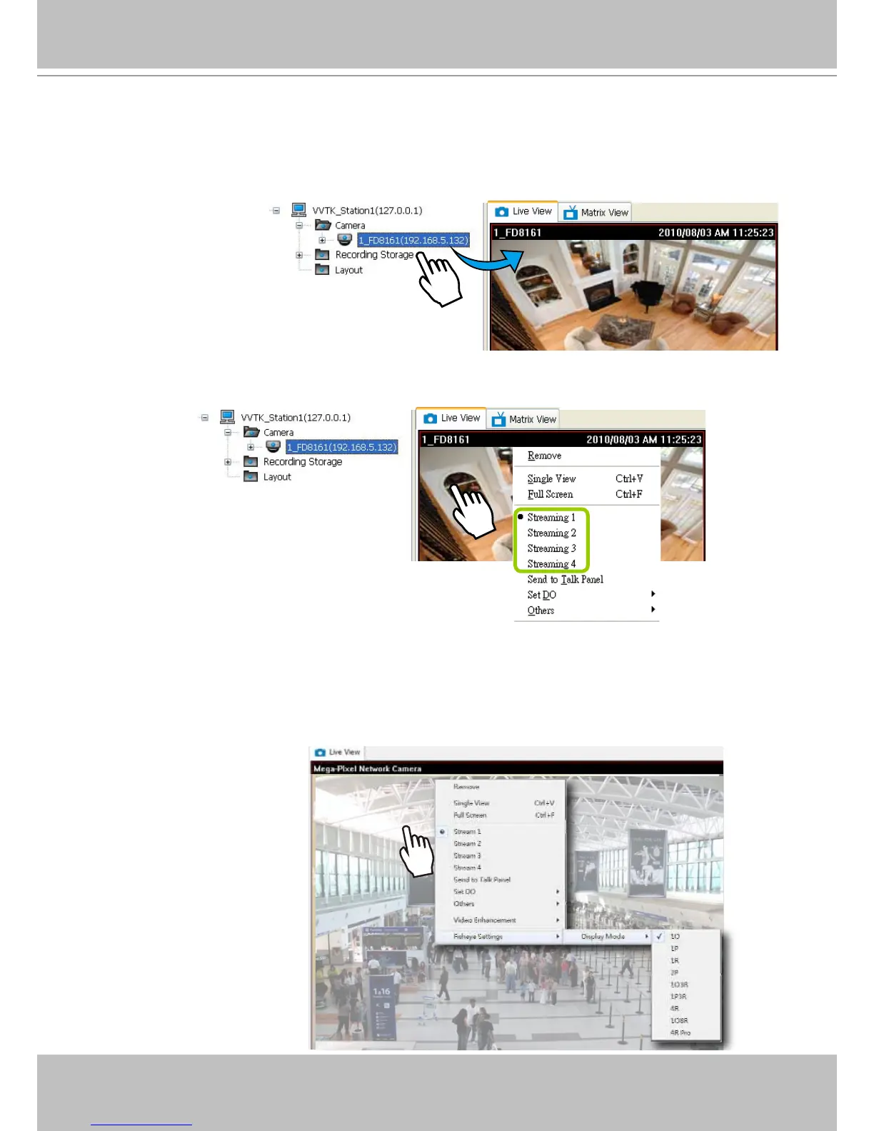 display Regional, Panoramic, or the combination of different views, right-click on a fisheye