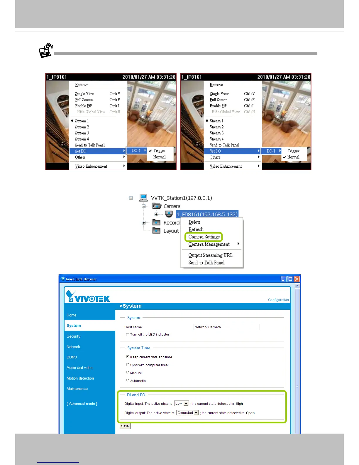 To manually enable DI/DO settings, please right-click the video cell and select Set DO to enable (Trigger) or