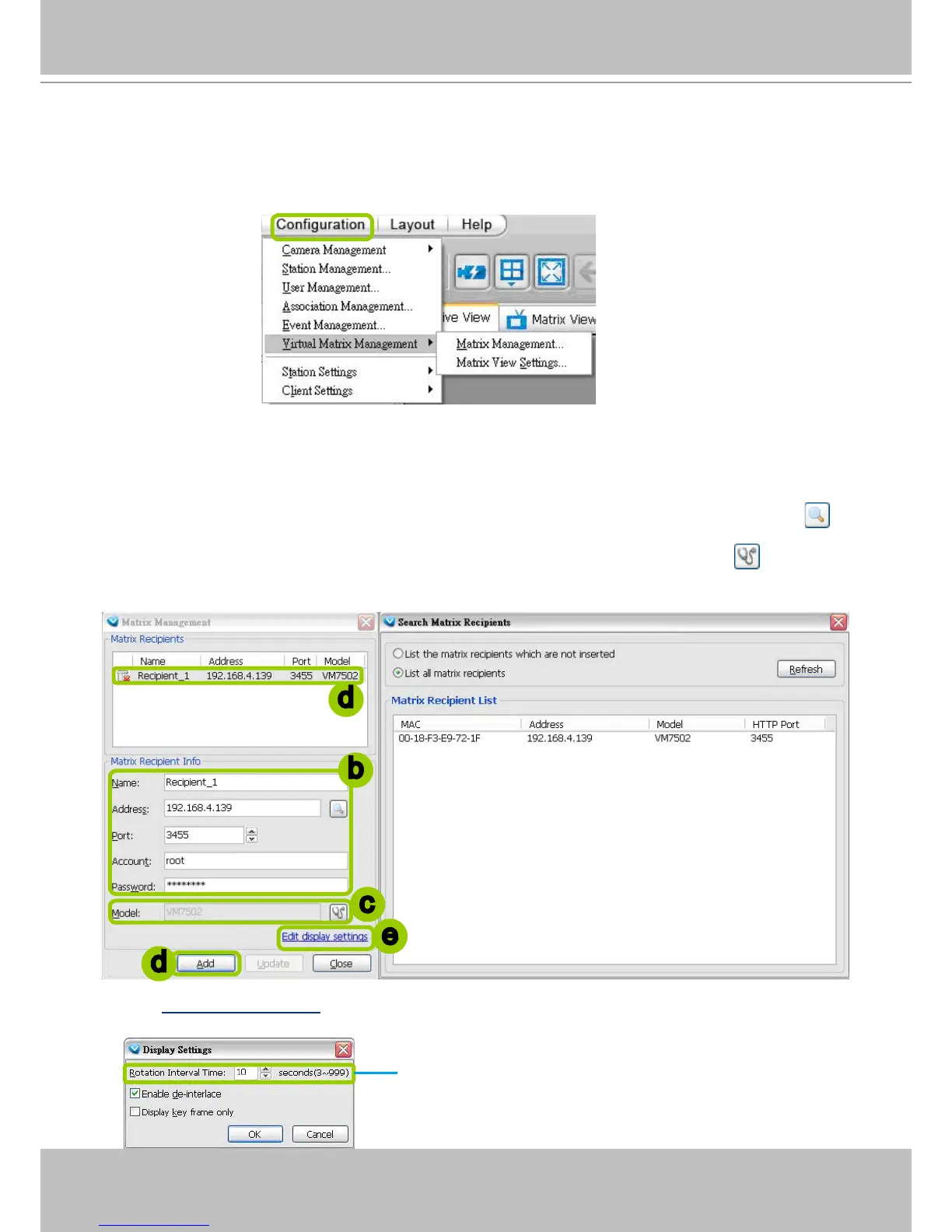 VAST Matrix Recipient(s). Use LiveClient to log in VAST Server, then click Configuration > Virtual