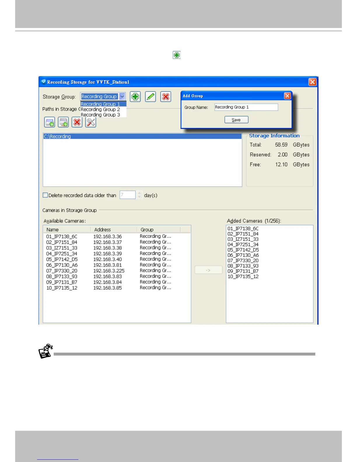 If you want to add a new recording group, click Add to give a name to the new recording group,