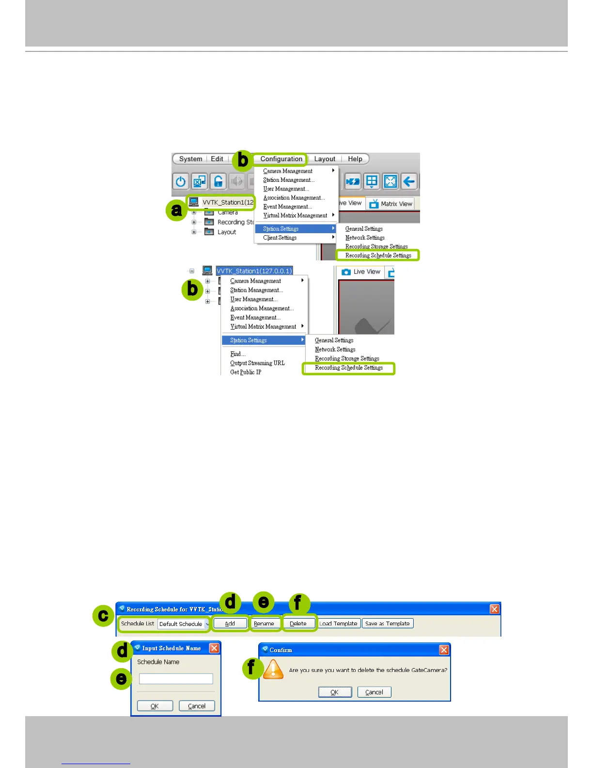 b. Click Conguration > Station Settings > Recording Schedule Settings on the menu bar (or right-