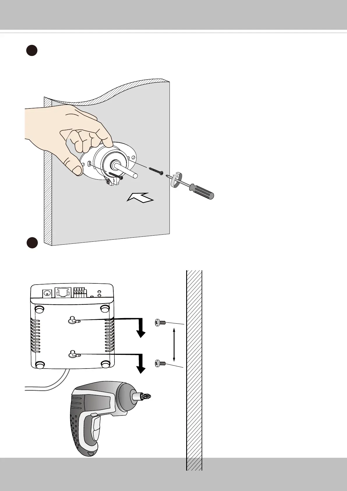 Find an appropriate location for the main body. Drive two screws 55mm apart into the wall, and
