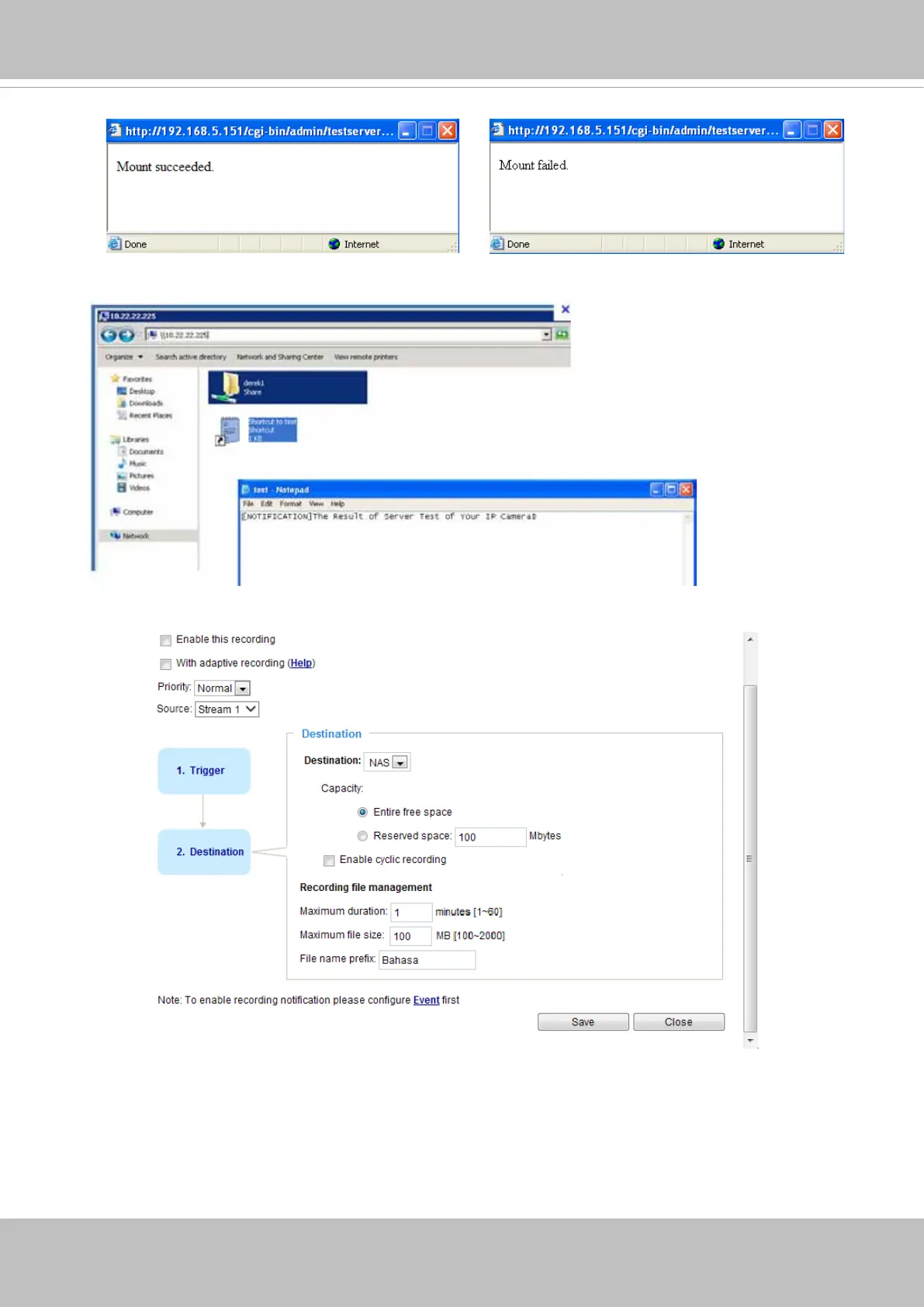 2. Click Test to check the setting. The result will be shown in the pop-up window.