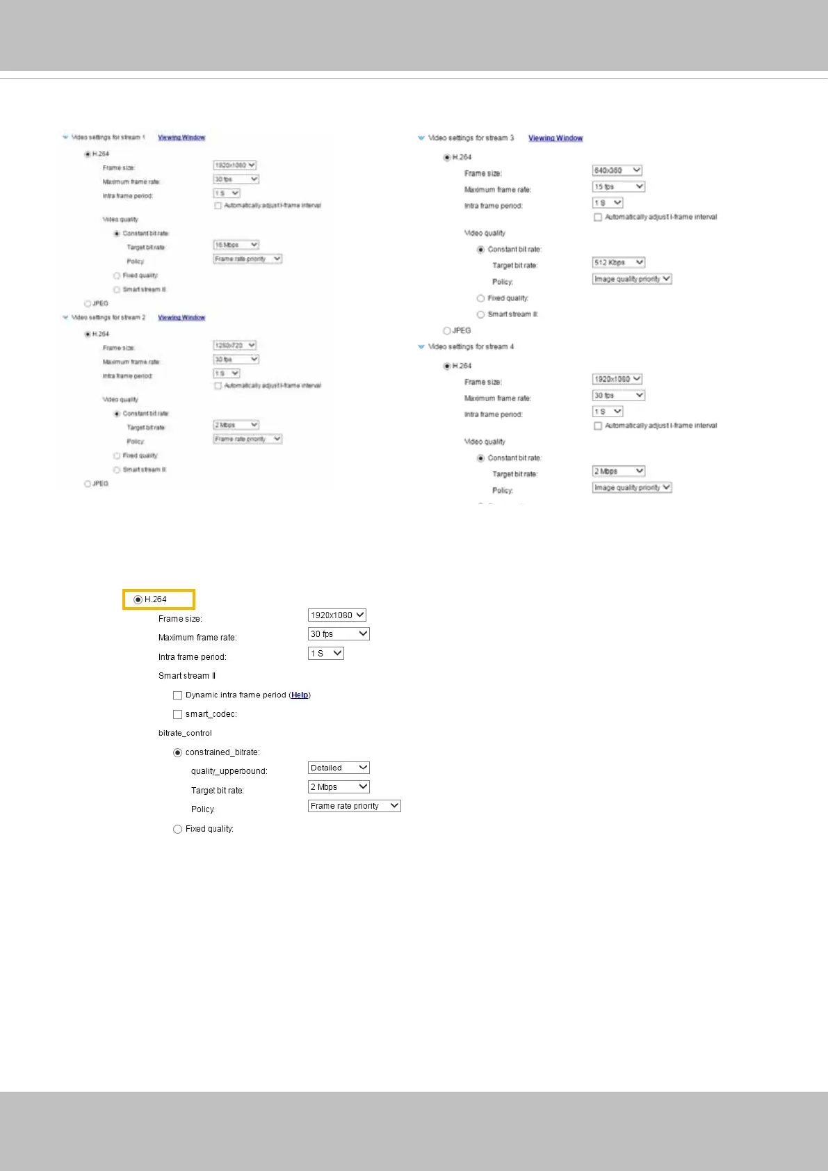 bit rate for live viewing on web browsers. Note that a larger frame size takes up more bandwidth.