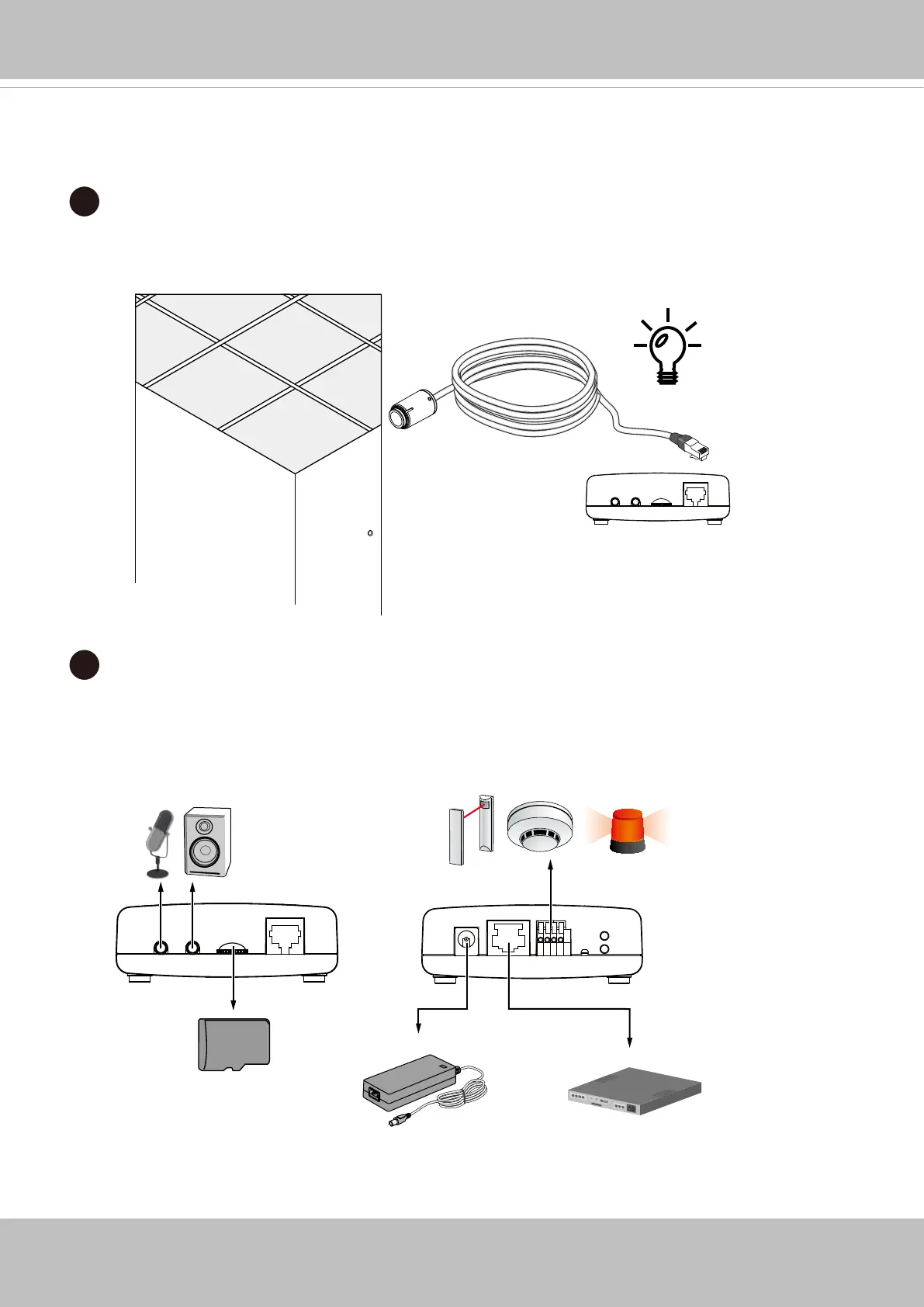 Connect other devices, such as detectors, alarm, speaker or microphone. The camera can