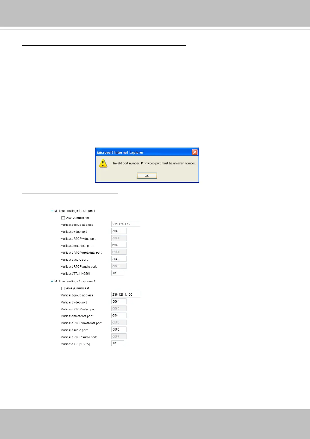 If the RTP ports are incorrectly assigned, the following warning message will be displayed: