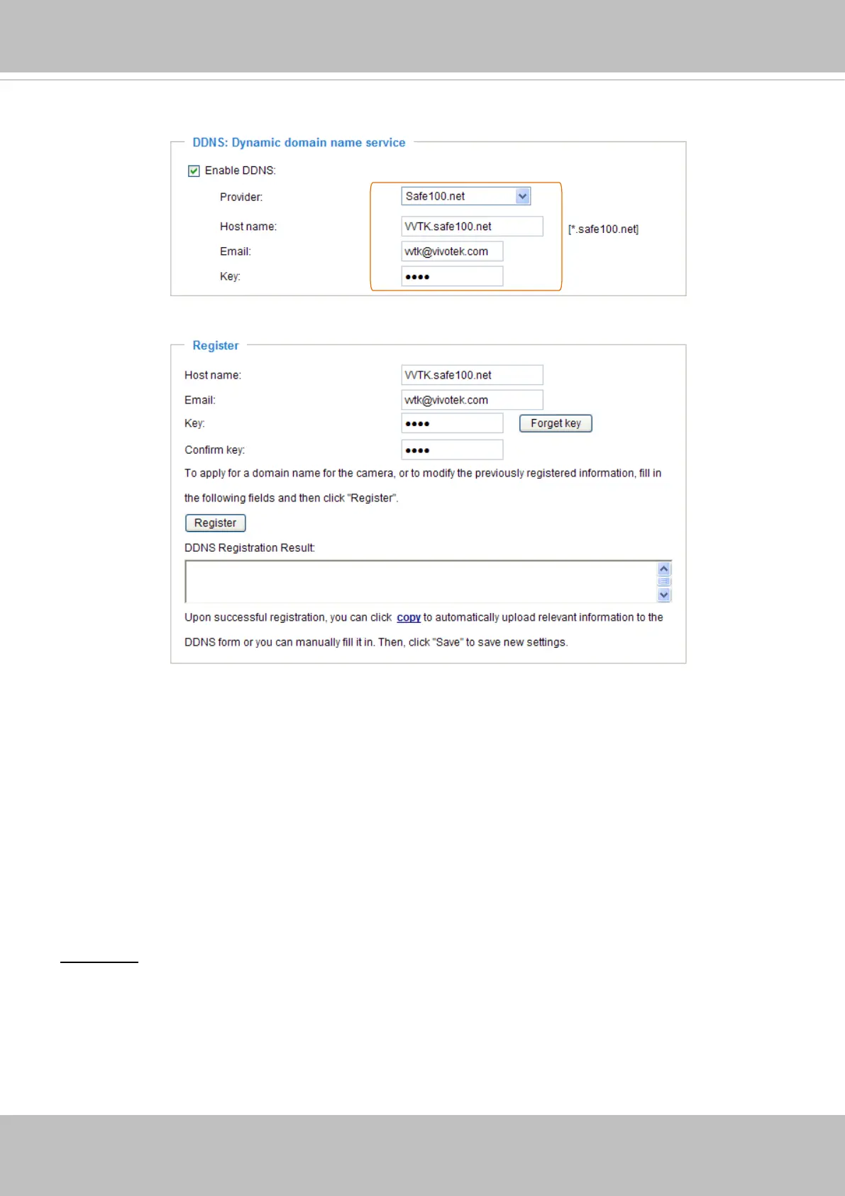 2. In the Register column, ll in the Host name, Email, Key, and Conrm Key; then click Register. After a