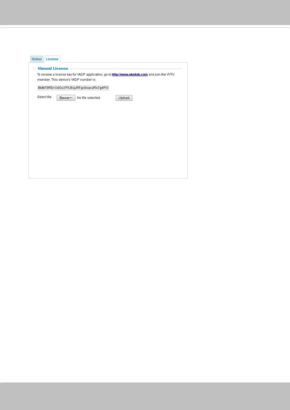 On the License page, register and activate the license for using VIVOTEK's VADP